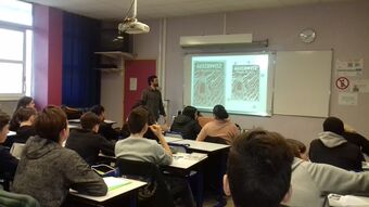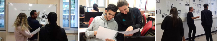 M. Bruno Suzanna et M. Didier Maheva, les intervenants de l'Association Equinoxe, ont encadré les élèves et leur ont proposé différentes activités : découverte du style graphique d’Art Spiegelman, jeux sur les titres des têtes de chapitres, premières esquisses...
