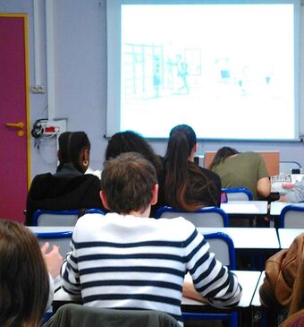 Les deux classes ont assisté, le 3 juin dernier, à une projection-débat au théâtre du lycée. Le film documentaire Charlie 712, retraçant l'histoire de la couverture du numéro 712 de Charlie Hebdo a été projeté, puis un débat sur la liberté d'expression animé par Michel Gairaud, rédacteur en chef du Ravi (journal satirique régional avec lequel le lycée travaille tous les ans), a pris place entre les élèves, leurs professeurs, une dizaine de jeunes en formation à l'IFFOL et des formateurs.