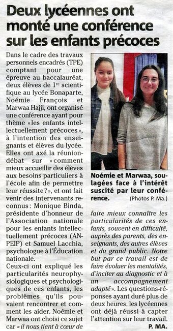 La conférence sur les Enfants Intellectuellement Précoces mise à l'honneur dans Var Matin