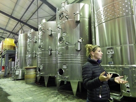 Nous avons poursuivi la visite dans la salle des grandes cuves en inox, hautes de 4 mètres.