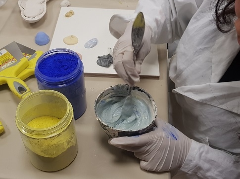Après une séance de découverte des métiers de l’artisanat, les élèves ont découvert la matière « plâtre », les échantillons de pigments et ont créé des moules en siligum et plastiline pour former divers petits objets.