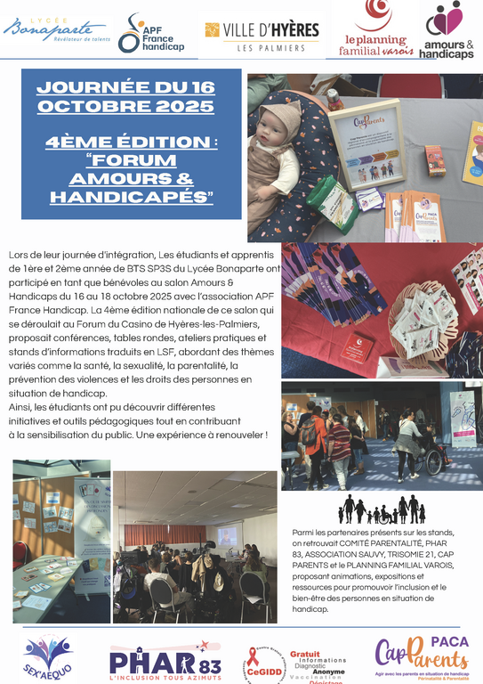 BTS SP3S : 4ème édition : “Forum Amours & Handicapés” Vie du Lycée lundi 10 novembre 2025 Article précédent Retour à la liste Article suivant