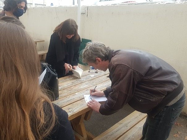 A l’issue du spectacle, l’acteur-comédien, la metteure en scène et le musicien-compositeur ont répondu avec enthousiasme aux questions du public (que vous trouverez ci-dessous) et se sont livrés à une séance d’autographes.