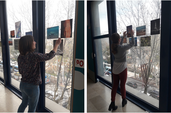 Morgane et Léa, deux élèves de terminale, ont passé leur mercredi après-midi à afficher les œuvres aux côtés des adultes volontaires...