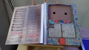 Fac-similé du manuscrit, avec l'espace pour une tablette numérique (utilisé lors de la "Fête de la Science")