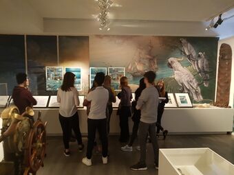 Le mardi 23 janvier, les élèves de seconde 2 suivant l’enseignement d’exploration Littérature et Société ont visité l’exposition intitulée « Chanouga et l’aborigène blanc » au Musée national de la Marine à Toulon. Cette dernière met en perspective la bande dessinée de Hubert Campigli (Chanouga) et les collections du Musée. Accueillis par la conservatrice, Mme Baron, ils ont eu la chance d’être guidés dans le musée par l’auteur en personne, qui a accepté également de répondre à toutes leurs questions. L’exposition est tirée d’une bande dessinée dont le troisième tome sortira au mois de mars… Cette sortie pédagogique correspondait au thème étudié en classe : « Regard sur l’autre et l’ailleurs ». Son but était de faire découvrir un processus de création, en lien étroit avec la dimension historique de l’œuvre ainsi que ses sources.
